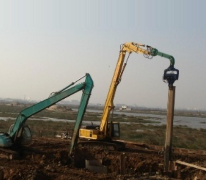 聚英机械制造的高频液压振动打桩机,是运用高频机械振动所产生的垂直激振力来实现沉桩、拔桩,特别适用于市政、桥梁、围堰、建筑地基等中短桩工程,噪音小,符合城市施工标准。